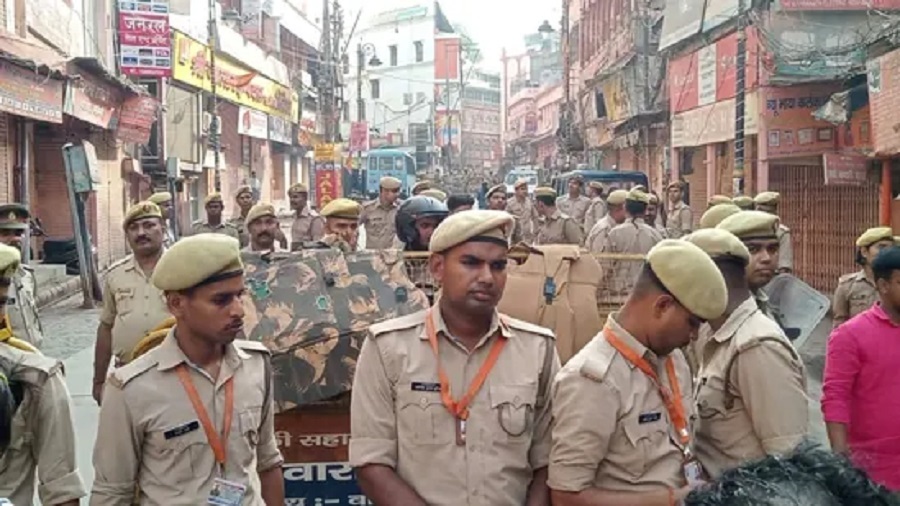 Heavy police force was deployed in around 1 km periphery of the Kashi Vishwanath-Gyanvapi Complex for survey of Gyanvapi Complex.