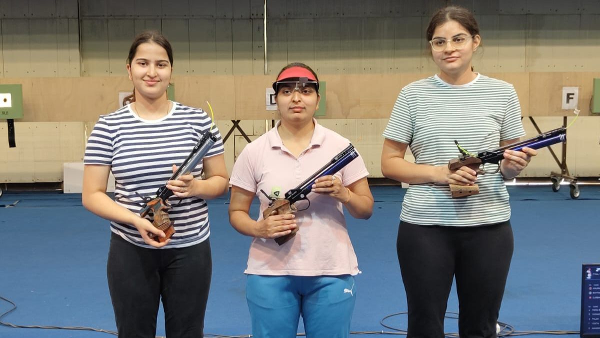 25m Rapid Fire Pistol Junior Women: Rhythm Sangwan, Manu Bhaker, Esha Singh
